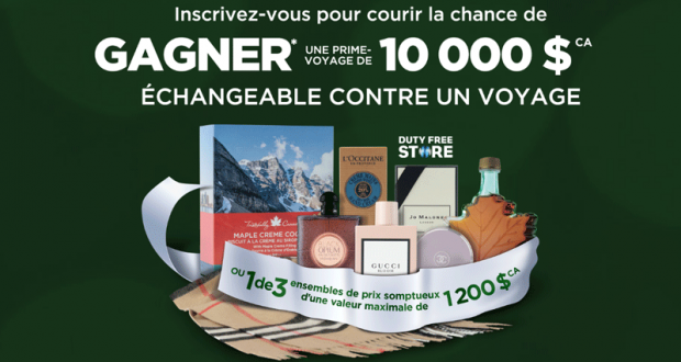 - Gagnez un chèque de 10 000 $ CA échangeable contre un voyage